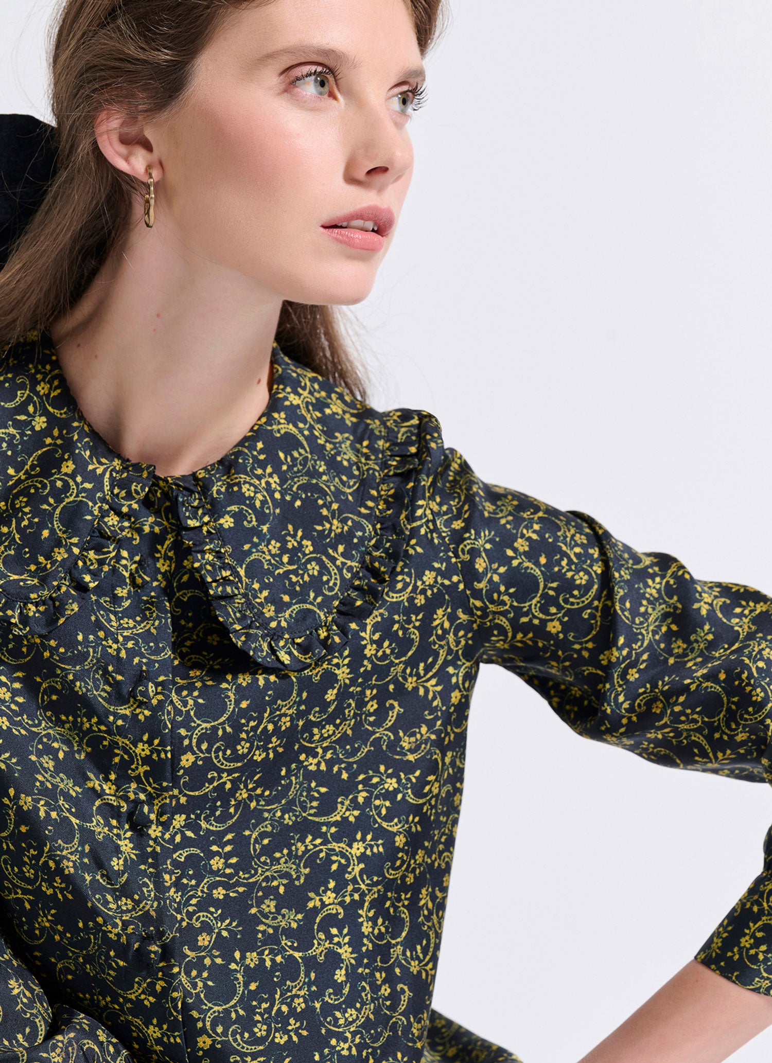 Seasonal collection of exclusively printed, pure silk shirts and blouses in jewel like tones.