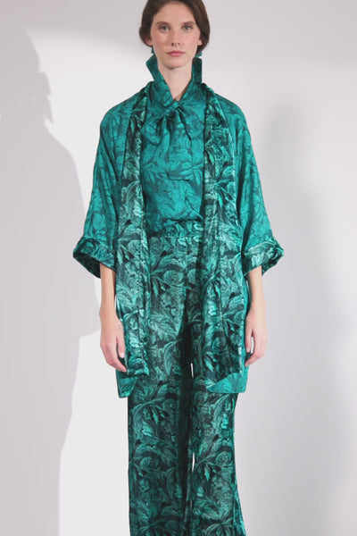 This garment has been made of digitally printed silk and silk-viscose velvet and must be treated delicately. While we can guarantee that the colours will hold their original brightness after repeated use, we ask that it is only dry-cleaned to ensure long-lasting quality.